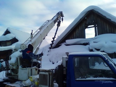 винтовых свай с помощью гидробура, на базе экскаватора-погрузчика Hidromek 102 B. Глубина бурения– 5 м,